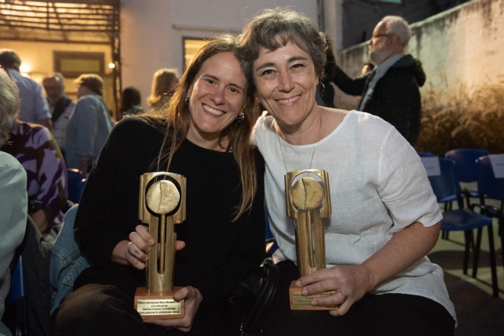 Nuri Quinteiro, del Equipo Argentino de Antropología Forense (EAAF) y Alicia Lusiardo, del Grupo de Investigación en Antropología Forense (GIAF), posan durante la entrega del Premio Internacional Mario Benedetti en Montevideo (Uruguay). EFE/ Sofía Torres